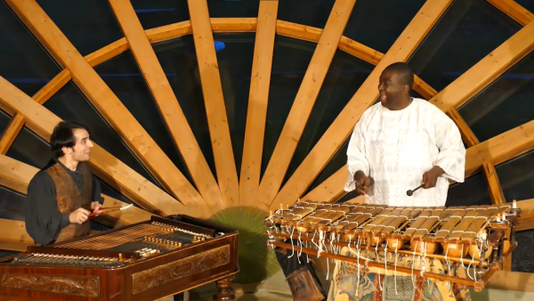 Grâce au balafon chromatique, instrument typique d’Afrique occidentale, et au cymbalum, digne représentant des sonorités d’Europe Centrale, les richesses rythmiques et mélodiques de ces deux continents fusionnent en une harmonie festive.